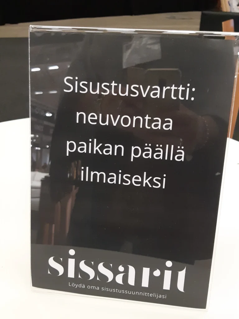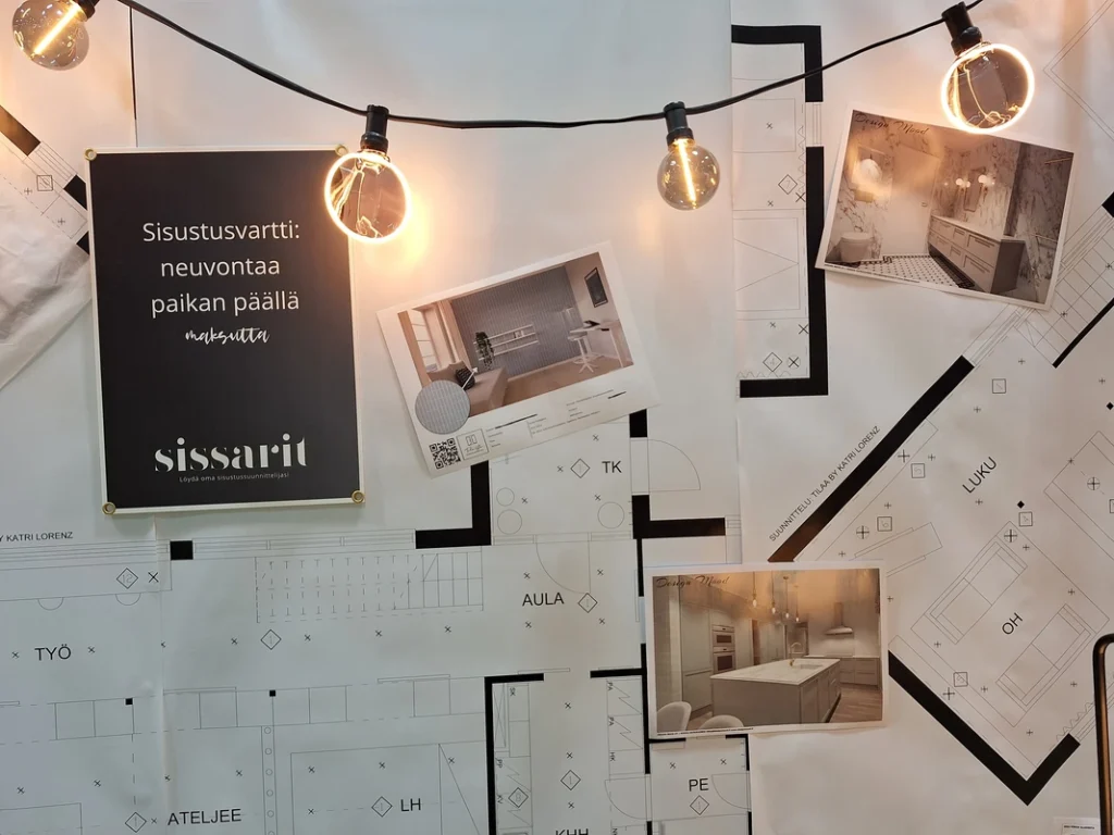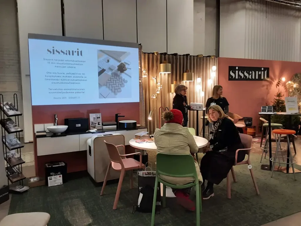 Sissarit on ollut kymmenen vuoden ajan näkyvästi mukana messuilla ja kauppakeskuksissa. Messuilla palvelemme sisustusvartein. Messut ovatkin helppo kohtaamispaikka, jossa asiakkaalla on mahdollisuus matalalla kynnyksellä löytää itselleen oma suunnittelija ja huomata, miten paljon ammattilainen voi auttaa. Olemme tavanneet satoja ja satoja asiakkaita, kuunnelleet mitä erilaisimpia sisustushaasteita ja auttaneet löytämään sisustuspulmiin ratkaisuja.